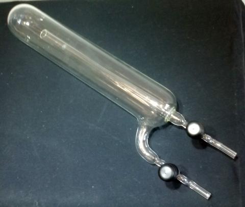 The cold traps in our assortment have volumes from 100 to 1500 ml, the atter of which are suitable for the collection of larger volumes of condensate. This avoids on the one hand clogging which occurs on occasion upon distilling larger amounts of material, especially if it contains sizable amounts of lower-boiling solvent which was not completely removed otherwise, on the other hand low-boiling reaction products, including gasses, may be collected and, if necessary, treated (e.g., dried of phosphorus pentoxide) before further use. The heavy-walled model is particularly suited for this purpose.