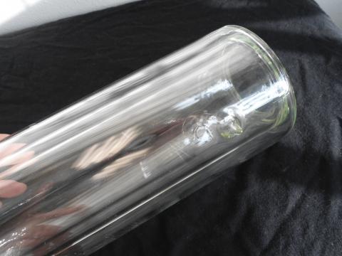 Lichte Weite = 5 cm, Außenradius = 9 cm, Länge = 26 cm. Gefertigt aus 3 -mm- Borsilikatglas.